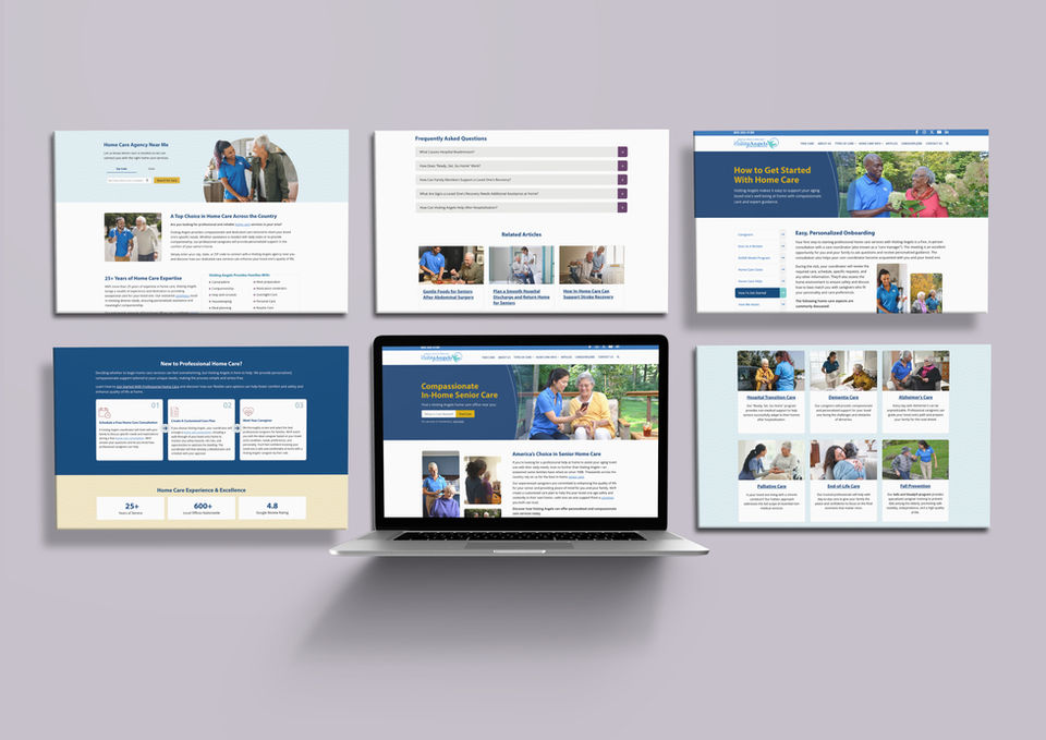 Visiting Angels Home Care’s website receives a compassionate, modern redesign. Calming colors, welcoming typography, and warm, supportive visuals create a digital experience that feels personal and reassuring. Every page is clearer, more consistent, and thoughtfully crafted, making the brand instantly recognizable, trustworthy, and as caring online as the services they provide in homes every day.